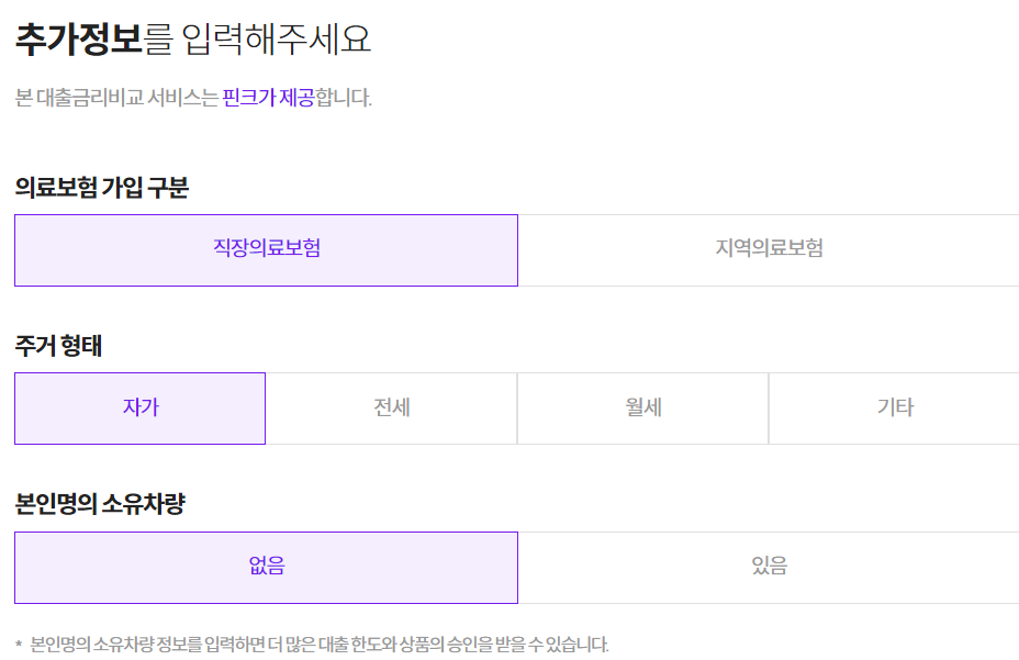 1~2분 뒤 자신의 상황에 맞는 대출 비교 결과가 나옵니다.