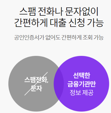 스팸전화나 문자없이 간편하게 대출이 신청이 가능하며 대출 권유전화 ,문자 등 차단할 수 있어 매우 편리합니다.