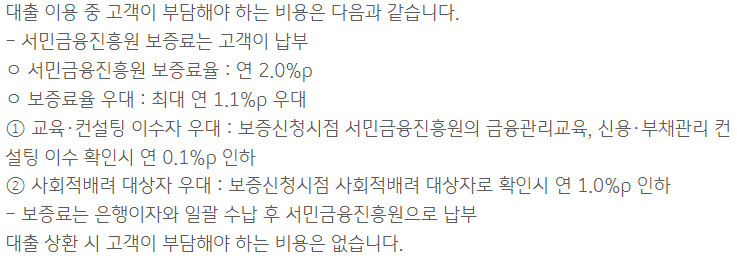 조기 상환수수료가 면제인 상품으로 대출 실행 후 여유자금이 있다면 언제든 상환하여 이자 비용을 아낄 수 있습니다.