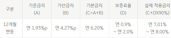 대출금리는 아래와 같습니다.
