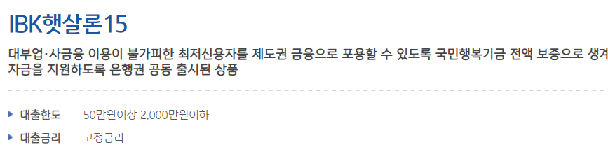 기업은행 햇살론15 정보