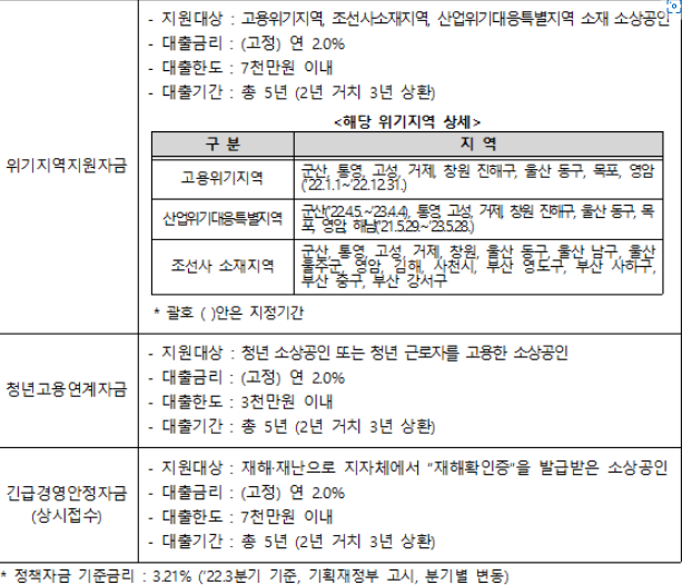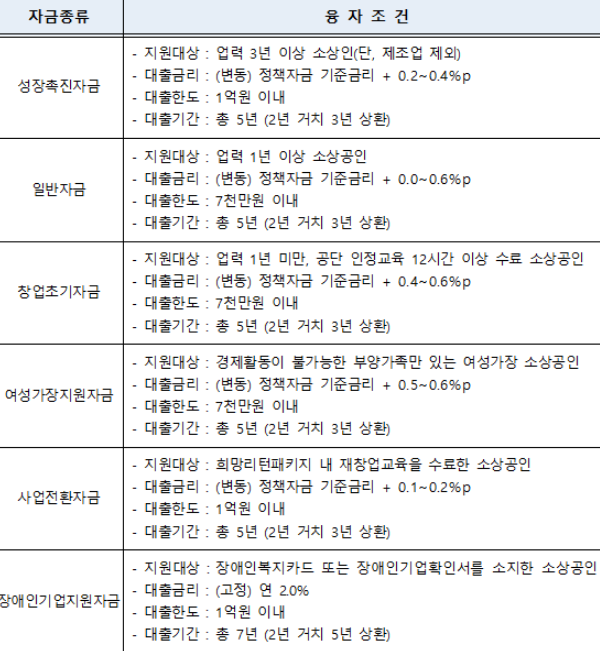 소상공인 정책자금 융자 조건