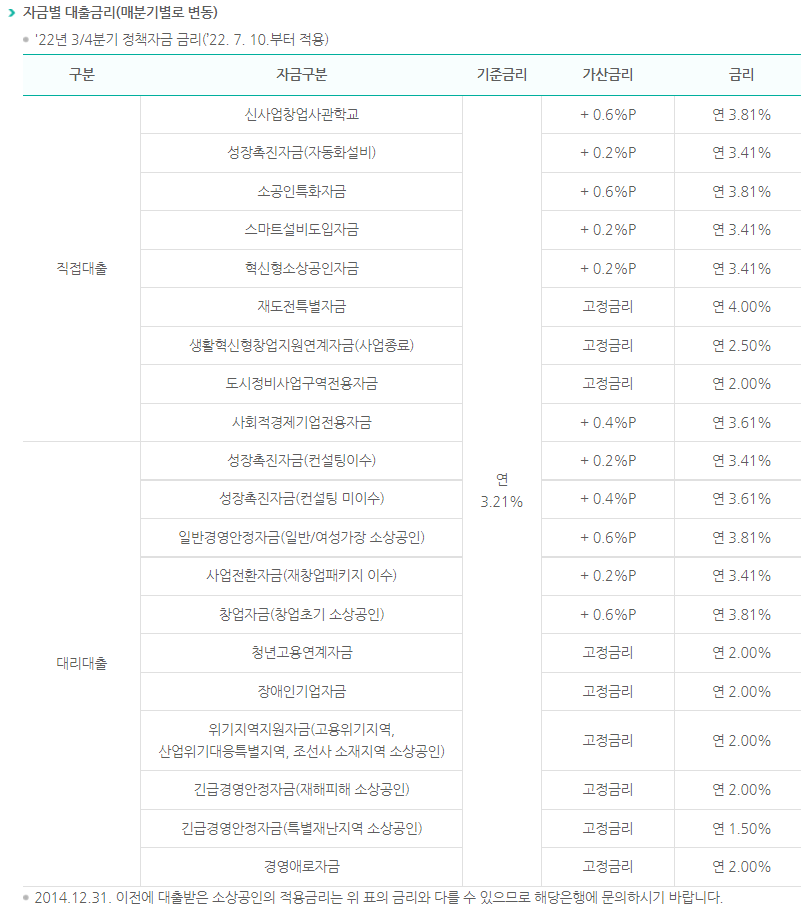 소상공인 정책자금 직접대출과 대리대출