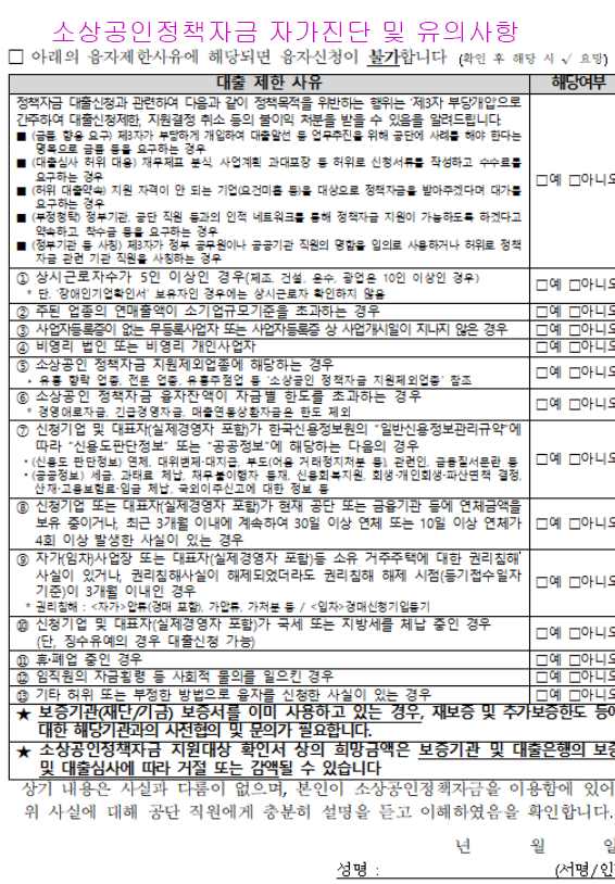 -소상공인 정책자금 자가진단 및 유의사항