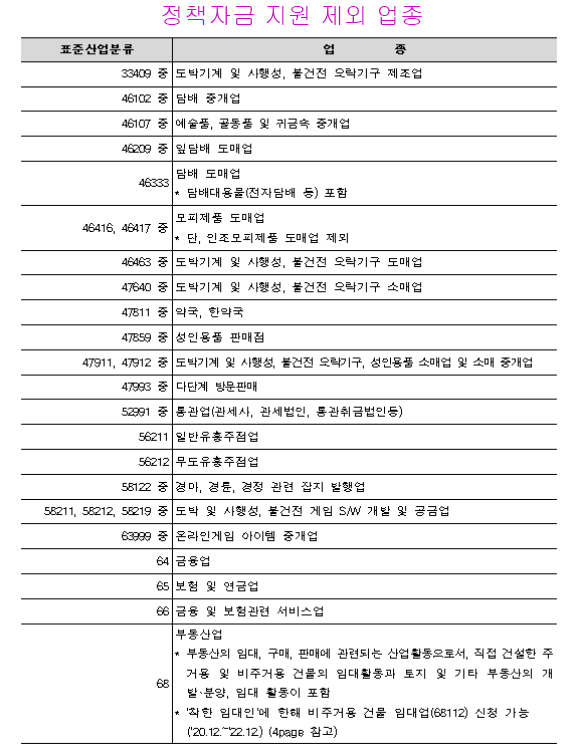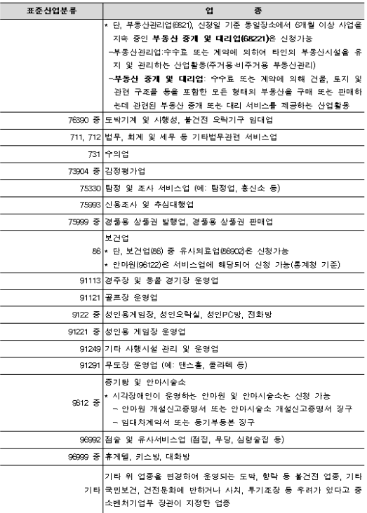 그리고 제외업종은 유흥 향락 업종이나 전문 업종은 제외됩니다.