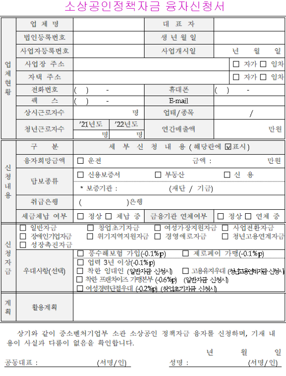 -소상공인 정책자금 융자신청서