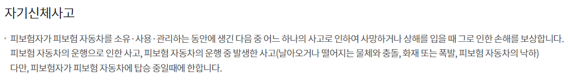 - 어떤 사고에 대해 보상이 되는지