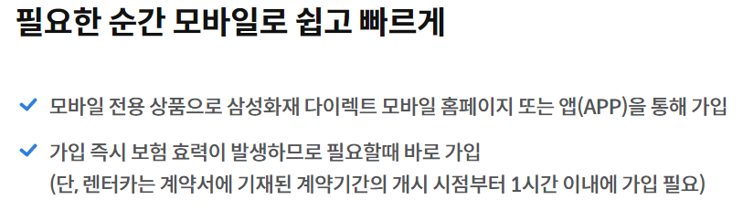 삼성화재 원데이 자동차보험 기타사항 및 가입방법