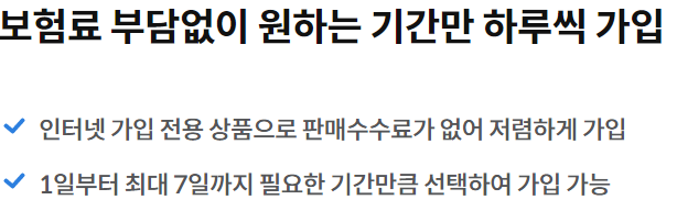 친구 차,부모님 차,렌터카를 운전할 때도 1일에서 최대 7일까지 원데이 보험상품 계산 및 가입은 로그인 없이도 가능합니다.