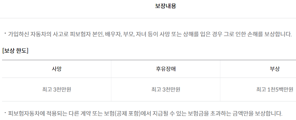 자기신체사고는 나와 내 가족이 상해를 입은 경우 보상을 받을 수 있습니다.