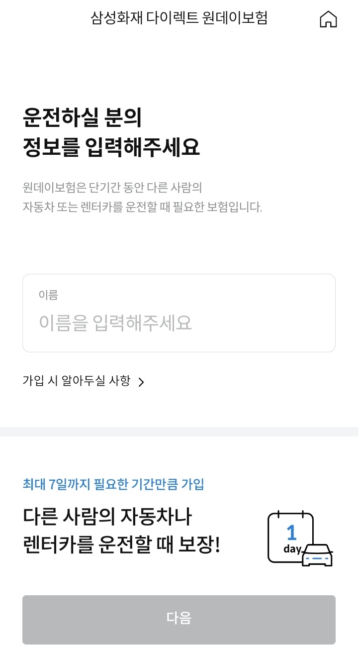 삼성화재 자동차 일일보험 가입절차 및 보험료