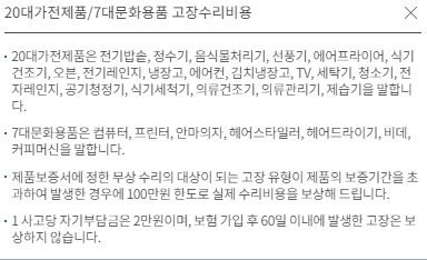 또한 화재로 인한 손해 뿐 아니라 20대 가전제품 및 7대문화용품 등에 대한 보장이 가능합니다.