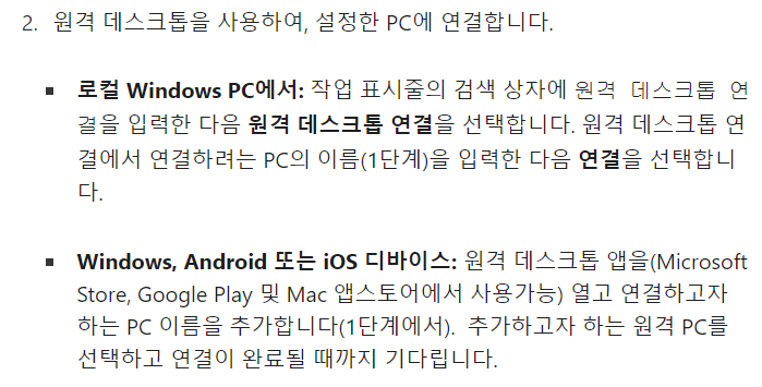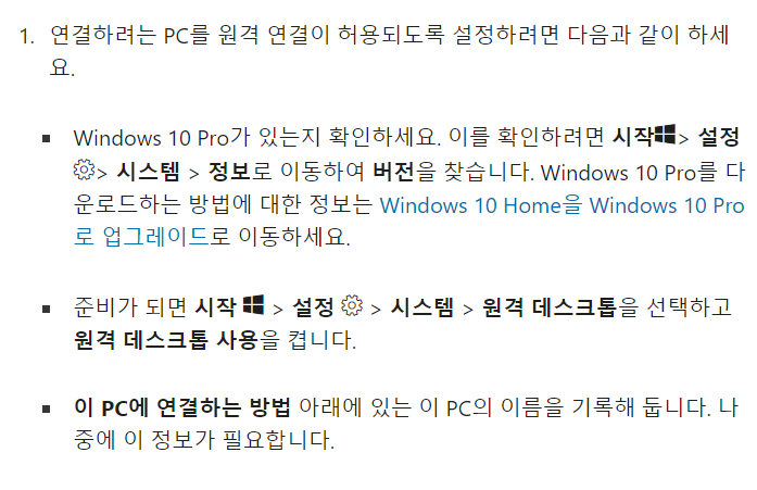 원격 데스크톱을 사용하는 방법 (microsoft.com)