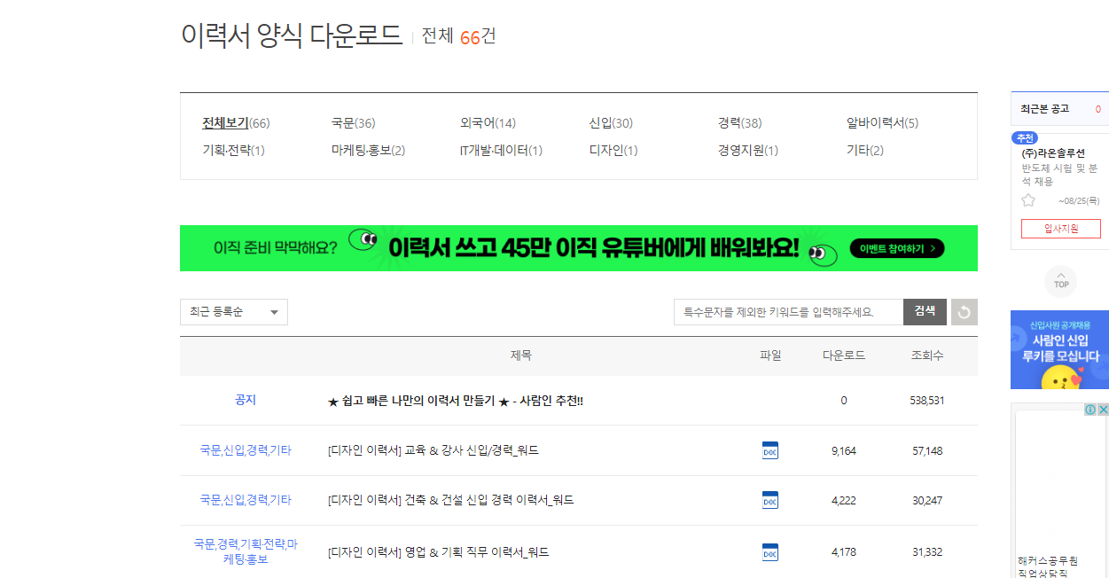 이력서 양식 다운 받는 사이트