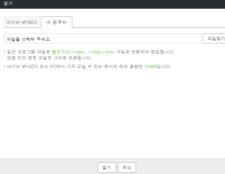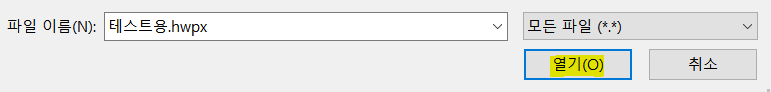 내 컴퓨터에서 변환할 hwpx파일을 찾아줍시다.