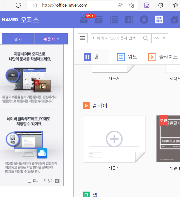 네이버 아이디를 이용하여, 네이버 오피스에 들어가 줍니다. 들어가면 열기가 있는데 열기 클릭!