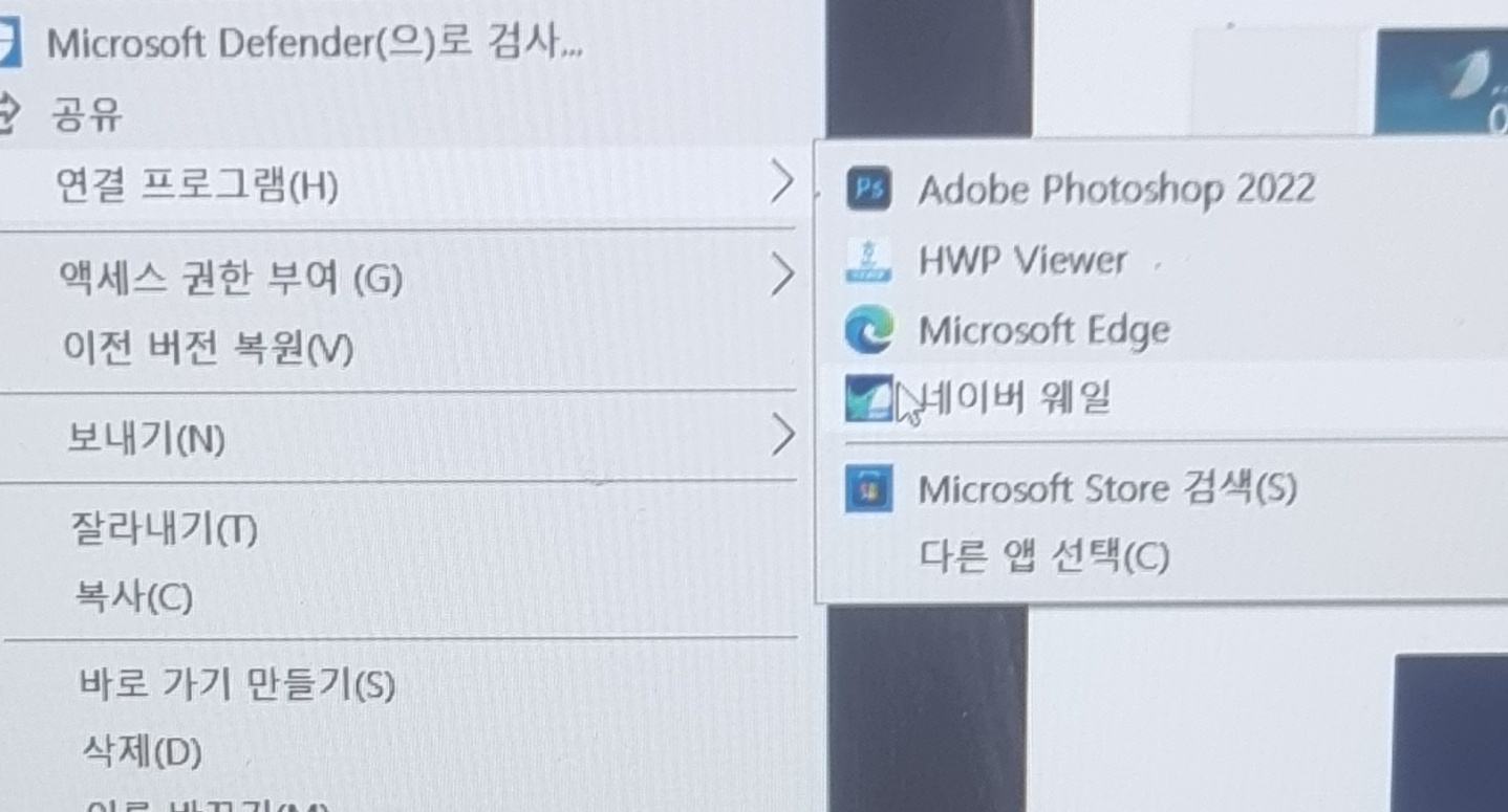변환할 파일 오른쪽 클릭 - 연결 프로그램 - 네이버 웨일 순서대로 눌러주시면.