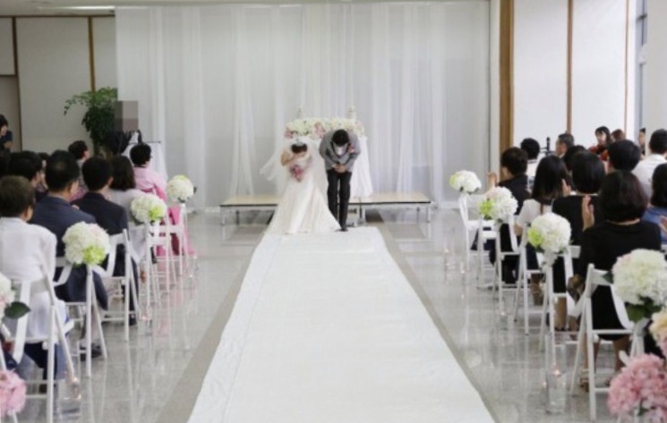이유불문 결혼식장에서 신랑, 신부의