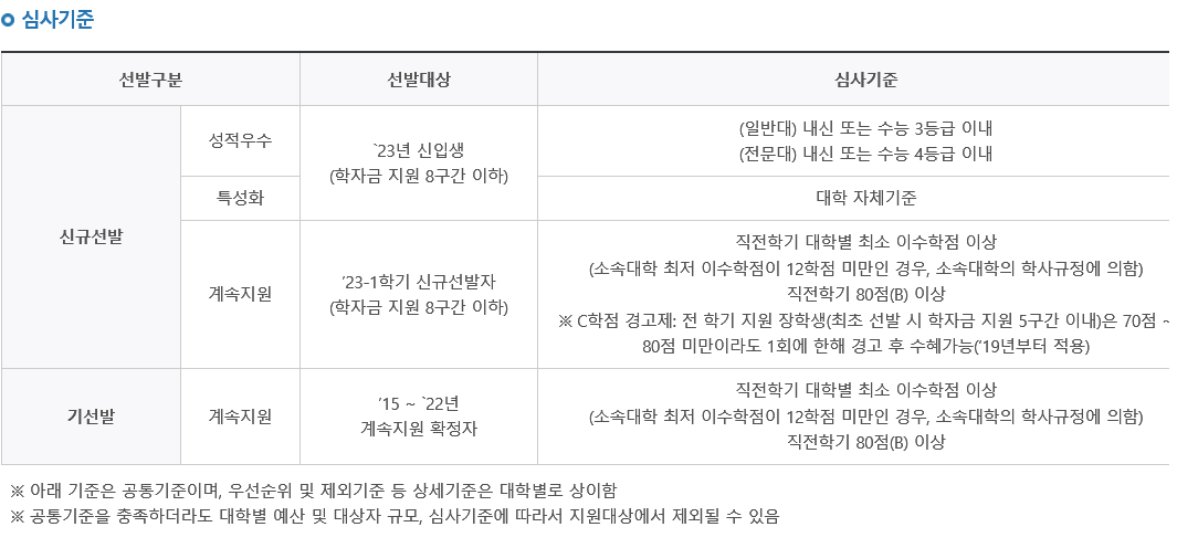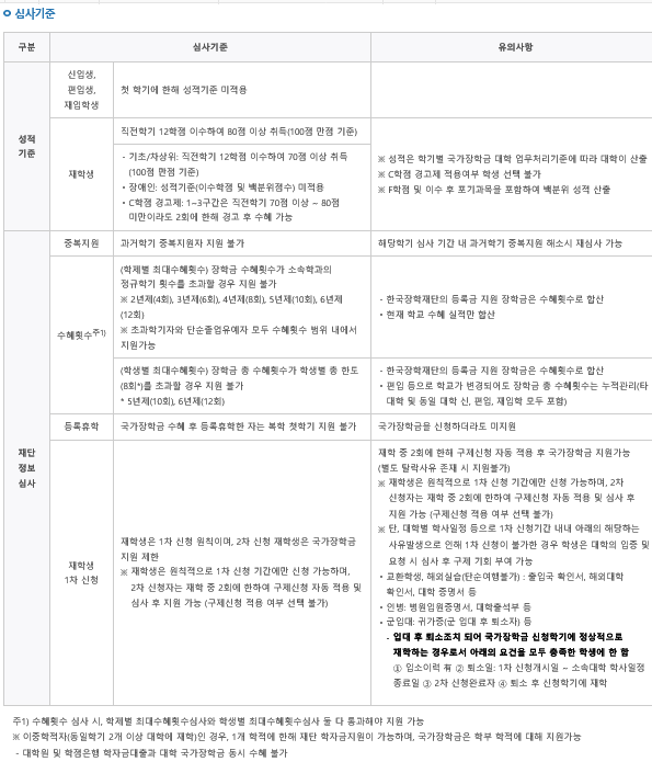 소득기준, 심사기준은 국가장학금 1유형과 동일합니다.