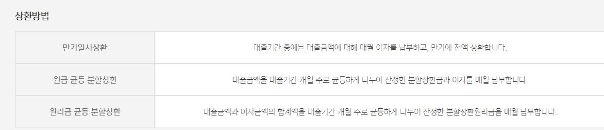 -상환방법은 원금균등상환이나 원리금 균등상환 방식이며