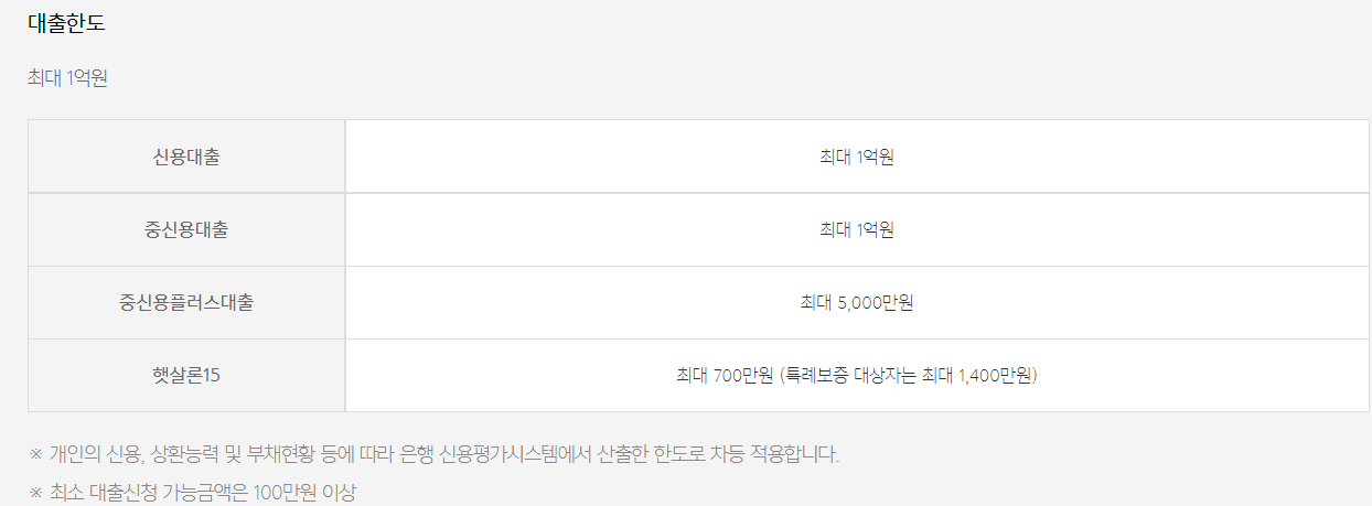 -대출한도는 최대 1억