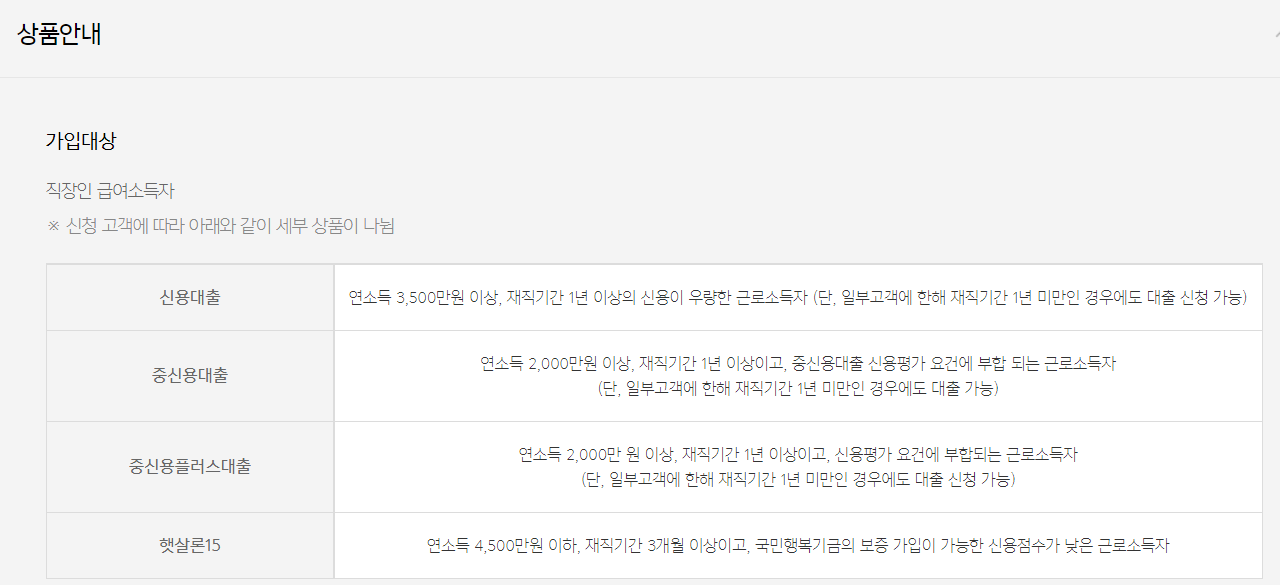 연소득 45백만 원 이하이면서 재직기간이 3개월 이상이어야 하고 국민행복기금 보증가입이 가능한 분들이 대상입니다.