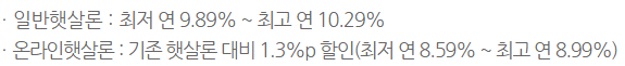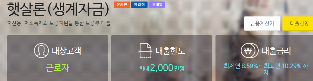 햇살론은 소득 및 개인신용평점이 낮아 제도권 금융 이용이 어려운 분들을 위한 상품입니다.
