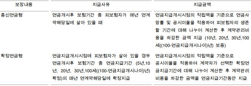 연금 지급형태는 종신연금형 10년 보증,20년 보증 ,30년 보증, 100세 보증이 있습니다.