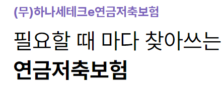 이 상품의 이름은 (무)하나세테크e연금저축보험으로 필요할때마다 찾아쓸 수 있는 연금저축보험입니다.
