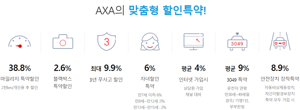 악사 다이렉트 자동차보험은 맞춤형 할인특약 상품이 많습니다.
