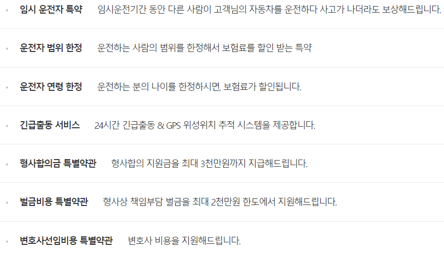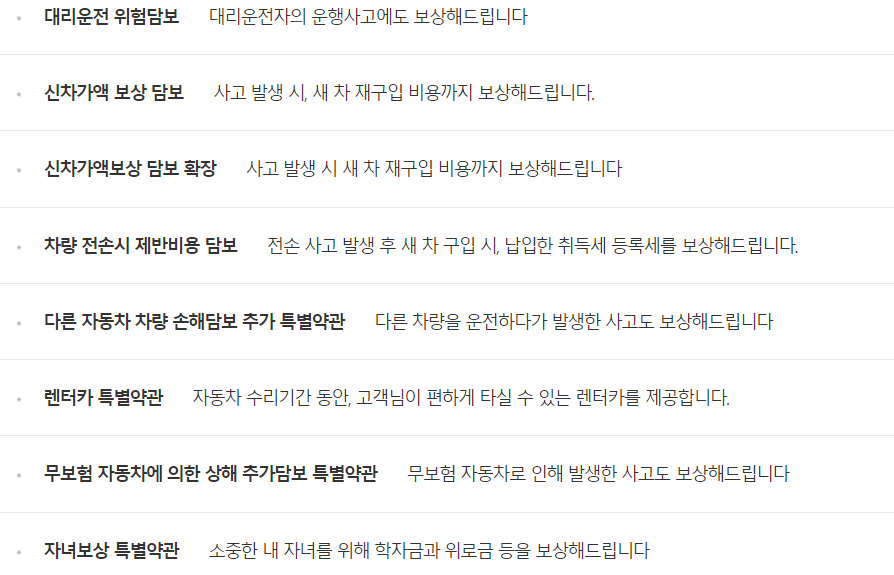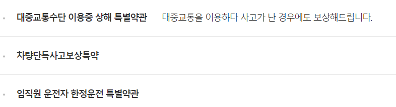 - 사고 시 받을 수 있는 보상에는 어떤 것들이 있는지 확인