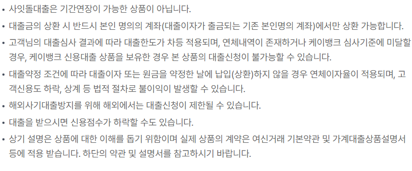 케이뱅크 사잇돌대출 기타사항 및 신청방법
