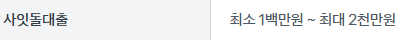 대출한도는 최소 1백만원 이상 최대 2천만원까지 가능합니다.