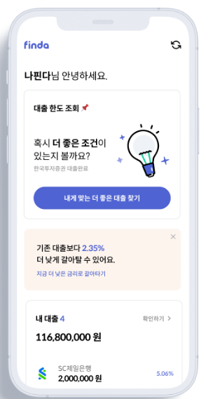 또한 자신이 지금 보유하고 있는 대출상품에 대해 더 나은 금리로 갈아탈 수 있는 지 알려주기도 합니다.