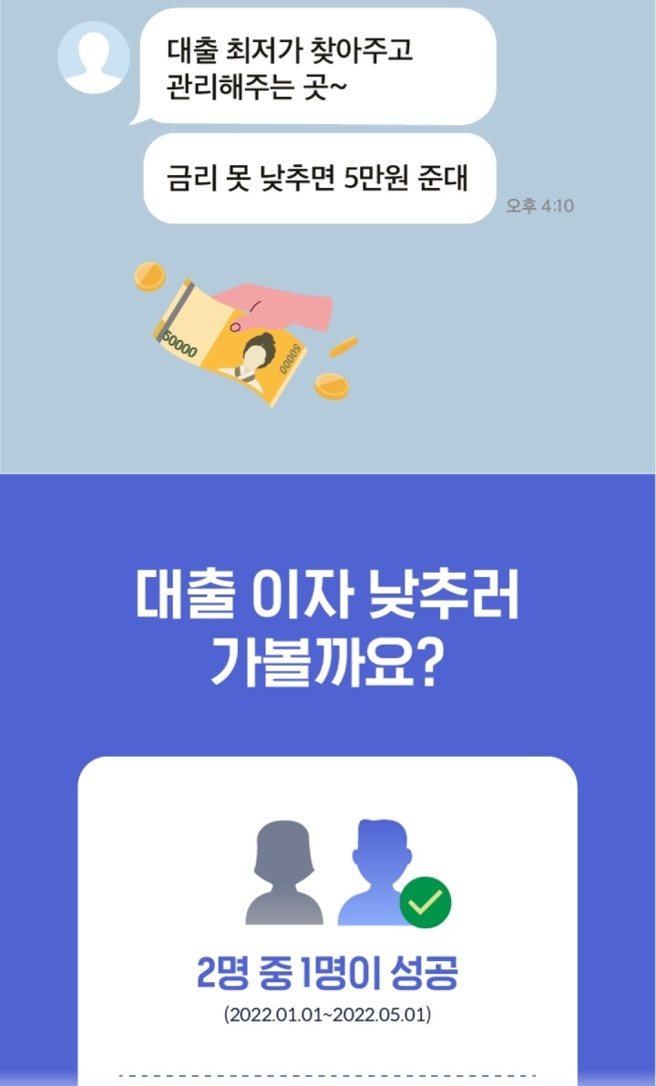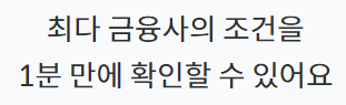 여러 금융기관의 대출 상품의 조건을 1분만에 확인이 가능합니다.