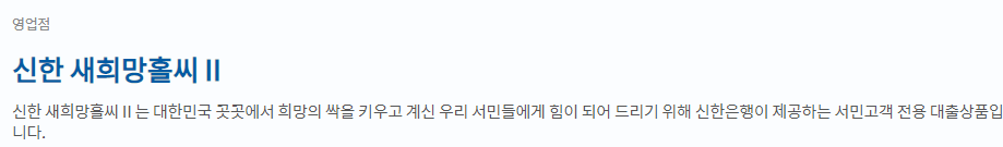 신한은행 새희망홀씨 II 정보 알아봅시다.