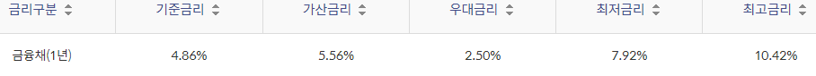 이 상품은 1년 변동금리형 상품으로 기준금리 + 가산금리 - 우대금리를 최종 적용합니다.