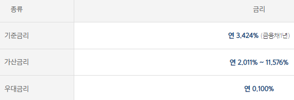 우대금리 조건은 금융거래정보 제공 동의 시 우대금리 0.1%를 적용합니다.
