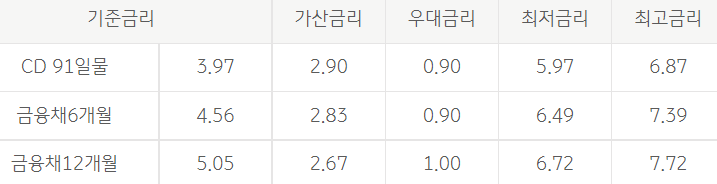 대출금리는 구분금리에 따라 아래와 같이 달라집니다.
