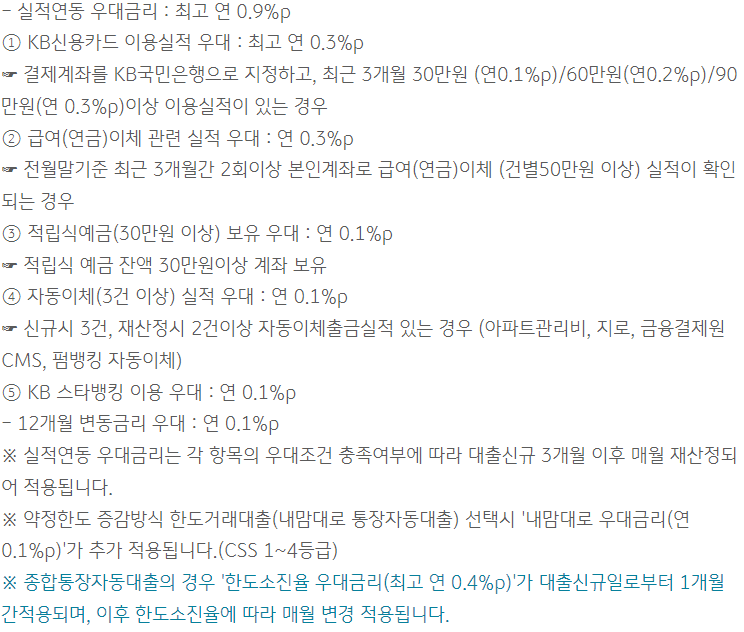 대출금리는 기준금리 + 가산금리 - 우대금리를 최종 적용하며 우대금리 조건은 아래와 같습니다.