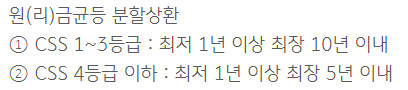 단 원(리)금균등분할상환은 CSS 등급에 따라 아래와 같이 대출기간이 나누어집니다.