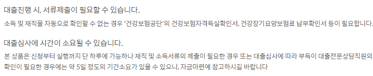 1년 이상 재직중이고 연환산 소득(연간소득)이 2,200만원 이상인 직장인이고 아래의 조건을 충족하면 가능합니다.