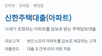 이상으로 신한은행 아파트담보대출 상품에 대한 정보를 알아보았습니다.