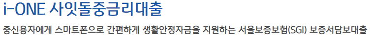 이 상품은 중신용자에게 스마트폰으로 간편하게 생활안정자금을 지원하는 서울보증보험의 보증서를 담보로 하는 대출 상품입니다.