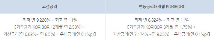 대출금리는 기준금리 + 가산금리 - 우대금리를 적용하여 최종 적용되며 우대금리 조건은 대출 신규 고객이라면 누구나 연 0.1%를 감면해줍니다.