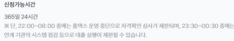 신청은 365일 내내 가능하며 한도 및 금리가 산정되면 신청할 지 잘 생각해보고 결정하시길 바랍니다.
