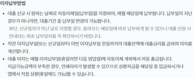 만기일시상환은 말 그대로 만기일에 전액 상환하는 방식으로 매월 이자만 내는 방식입니다.