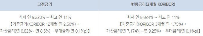 대출 금리는 아래와 같습니다.