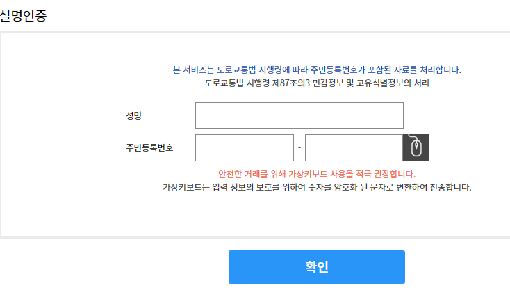 홈페이지 이용 시(※ 면허소지자 홈페이지 접수 시)