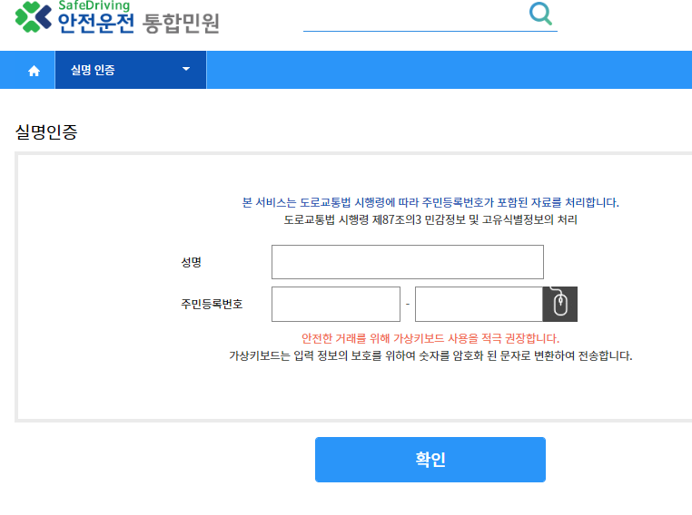 인터넷 접수는 아래 안전운전 통합민원 홈페이지를 통해 신청이 가능합니다.
